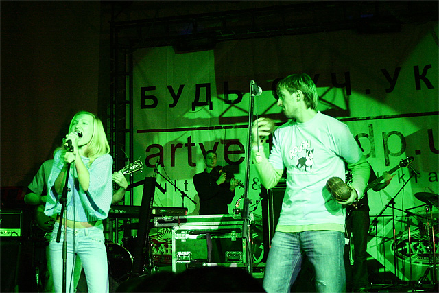«... днепропетровские "хлопці з перцем" на сцене появлялись с сальто и колеса. а выступали вообщев шароварах, это конешно смотрится стебно, в шароварах и с электрогитарой... »zzzluka