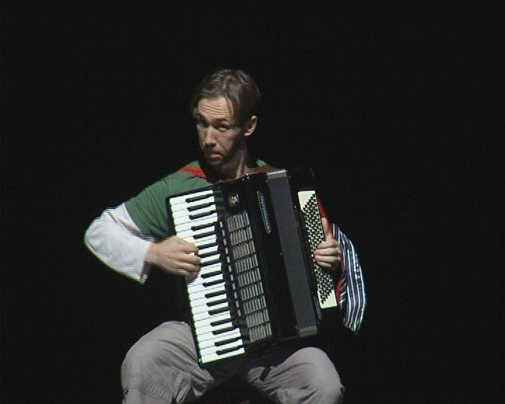 Но — тема сравнений на этом «Свободном Танце», видимо, многим пришлась по вкусу. Так, многие уловили определённое сходство перформанса Владимира Голубева(«Не соло») со спектаклями Евгения Гришковца. Вот как у наших людей фантазия гуляет!!! А лично мне эпизод Володиного перформанса со выставлением носков напомнил прошлогодний разговор с Серёжей Головнёй (Саша Сошникова & Сергей Головня — дуэт VOICE из Молдовы-неоднократные участники фестиваля "Свободный танец — Авт.) — о том, что «мужик свою территорию всегда метит носками». Да что там говорить! У самих VOICE эта тема в перформансах тоже встречается не единожды… (Делаю вывод: скорее всего тема мужчин и носков — тотальна, существует она и в Молдове, и в России… да чего греха таить, и в Украине.) Но эти параллели вовсе не отрицают очевидного. А именно — того, что спектакль «Не соло» был воспринят зрителями наиболее позитивно и запомнится им надолго. Ведь не каждый танцор публику радует ещё и игрой на аккордеоне и вербальной рефлексией! Впрочем, соло-танец тоже был… И теперь не только Владимир Голубев, но и зрители его перформанса в Днепропетровске знают, как это — «ходить ходуном»…(Из авторской аннотации к перформансу: «Я — за неповторяющуюся рефлексию на сцене. Думаю, любому человеку есть ЧТО сказать со сцены. Для этого не нужно быть артистом, нужно просто говорить о том, что тебя волнует».)