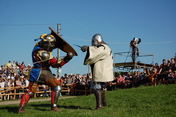 Неприємно вразили також і наші глядачі. Політика заполонила «моСкову» сіру речовину настільки, що під час турніру багато хто дозволяв собі кричати «Бий москалів!» або «Вали ляхів!» або «Бульбашів на мило!» Або ще таке - «Ганьба!», «ФУ-у-у-у!» - на адресу всіх команд, крім української… Це огидно. Не буду сперечатися, із боку збірної Росії деколи проявлялася надмірність у добиванні утрьох одного противника, але для цього є судді і викрикувати подібні гасла - це ганебно. Фестиваль дав чудову можливість перенестися у іншу епоху, стати на ці три дні учасником історичних подій, поринути у вир брязкання металу та вболівання за бійців. Для повної картини ще не вистачало прекрасної дами із хустинкою, яка б давала знак до початку бою.