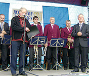 На фото: Сторічному оркестру жителі Лисиничів співали “Многая літа”…
