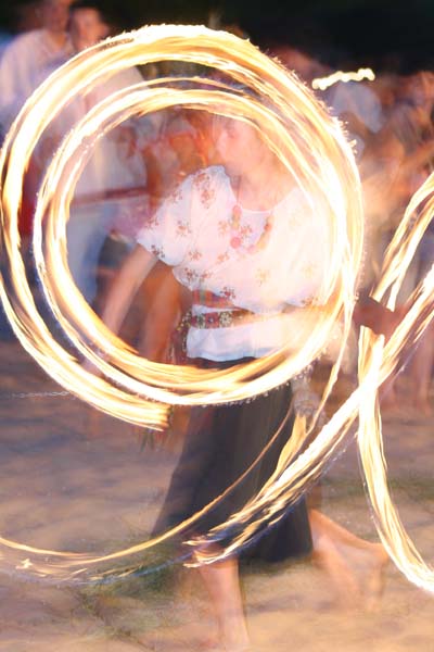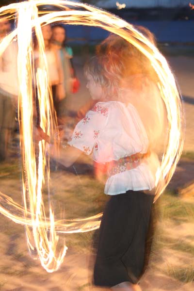 По мірі того, як на Монастирській острів спустилася ніч, купальське свято стало більш запальним, більш пристрасним. Під виступ полтавського фольк-рокового гурту «Контрабас», на пісок виходить тендітна дівчина-факір, темп музики збільшується, а дівчина, як заворожена, виконує свій вогняний танок, причаровуючи погляди всіх присутніх. Вогонь – це невід’ємний супровідник Купальської ночі, він запалює серця коханням, лікує душу та тіло, надає сил та відваджує нечисть.