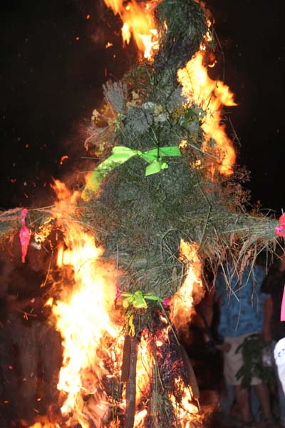 Ось починають лунати звуки етнічних барабанів та трембіти гурту «Аяуяска». Святкове багаття вже палає, а до нього несуть купальський коровай. Кожен має змогу доторкнутися до короваю та загадати бажання, яке має збутися до наступного Купала. Дивні мотиви барабанів пробуджують в присутніх щось стародавнє, вертають до часів, коли наші предки шанували громовержця Перуна. Навіть байдужі спостерігачі починають рухатись навколо великого багаття у дивному танку, який об’єднує сучасність з минулим. Один за одним плигають через багаття хлопці, щоб набути більшої сили. Випробувати долю наважуються і закохані, які, міцно тримаючись за руки, плигають через вогнище, щоб дізнатися чи судилося їм бути разом.