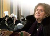 ...Тим часом творчий вечір Ліни Костенко розпочався. Зал заповнений вщерть, чимало стоять або сидять на східцях в проході — видно, запрошень їм не дісталось, але проникнути в зал все ж вдалося. У першому ряду, на приставних стільцях, — актори, які грали у виставі «Берестечко», поставленій за твором Ліни Костенко. За ними — там, де мали б бути студенти, — люди далеко не юного віку. А от молоді, яку організатори планували на прохання Ліни Костенко в першу чергу запросити, майже не видно. Натомість виділяються депутати і чиновники — може тому, що обличчя їхні багатьом відомі.