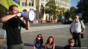 Захисники української мови стоять на площі Свободи сьомий день поспіль. Чергування на майдані, розпочате 3 липня, не припинялося ані вдень, ані вночі, повідомив організатор акції Дмитро Пилипець.