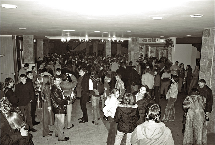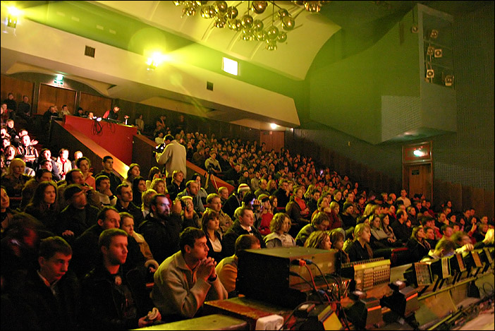Поподробнее. Первое Отделение — Сергей Бабкин, коротко остриженный, босой, в длинном черном сером балахоне с нашитым белым сердцем и протяжными грустными песнями, бархатными летучими мышами шелестящими над головами притихшей разноцветной публики. Тоска заснеженного берега пустой реки в этих песнях. Кулисы любимовского Театра на Таганке в этих песнях и тень Гамлета Высоцкого.