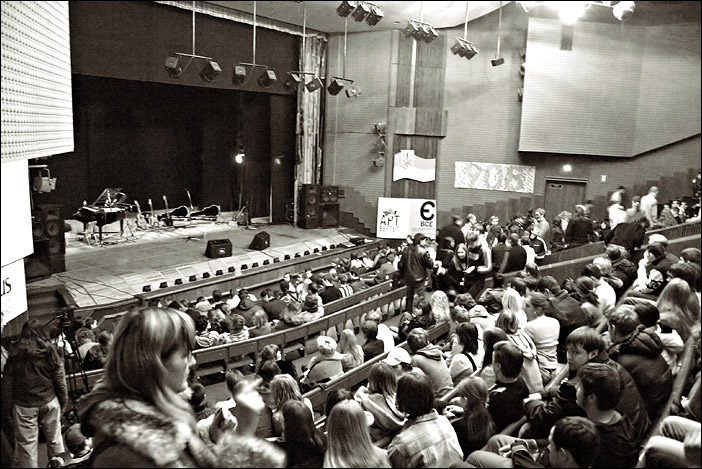 Всё, как год назад: тот же Бабкин с гитарой, тот же Сова с дудой, тот же тапер Фима на клавишах. Только всё теперь иное. Вместо крохотного