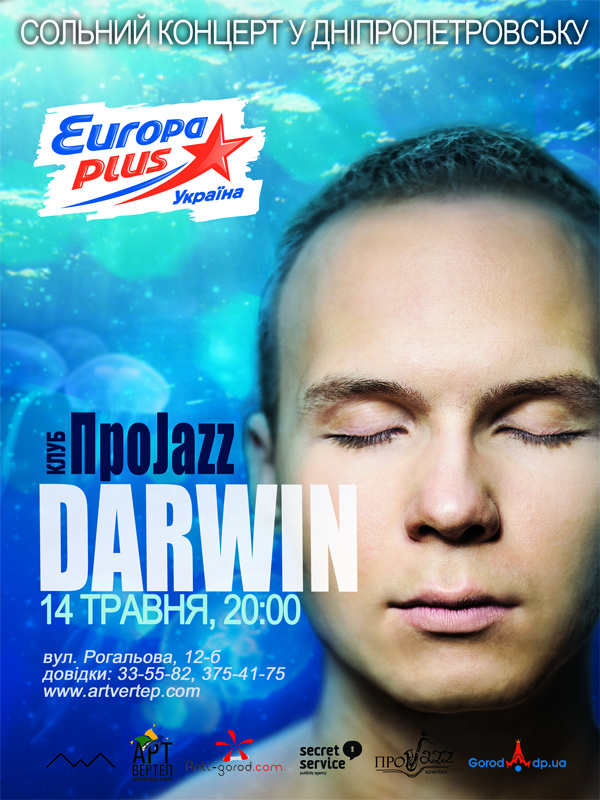 Група DARWIN це елітарна поп-музика нового покоління. Фронтмен гурту Влад Дарвін фіналіст і музичний локомотив Другої Української Фабрики Зірок. Його пісні ставлять в один ряд з композиціями Земфіри, а його самого порівнюють з молодим Стінгом. У групі DARWIN відіграють також 5 музикантів-віртуозів першого ешелону. Бек-вокаліст Dim Teron кращий бек-вокаліст Грузії, який неодноразово працював на конкурсі “Євробачення”. У репертуарі групи вже є кілька радіо-хітів “Амстердам”, “Зелена Фея”. Навесні 2010 відразу в 10 країнах світу відбудеться реліз дебютного альбому гурту. Кожен концерт DARWIN a це завжди ексклюзивна програма з урахуванням побажань слухача, а також це красива музика, дорогий звук і теплі емоції.