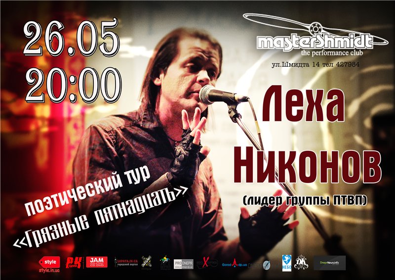 Приглашаем вас посетить потрясающее даже самые изощренные умы событие — поэтическое чтение стихов Лехи Никонова устами автора в рамках всеукраинского тура «грязные 15».