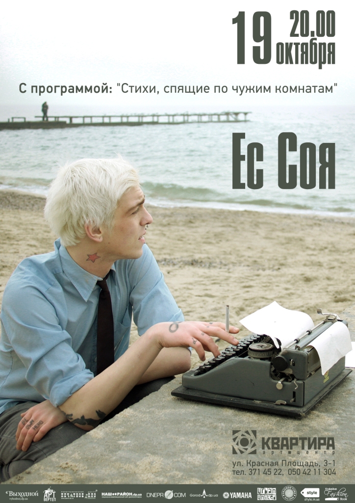 19го октября в 20.00 ждем вас на поэтическом вечере Евгения Сои - одного из самых популярных современных поэтов СНГ 2012 года. Его гастрольный тур забит на 3 месяца вперед.