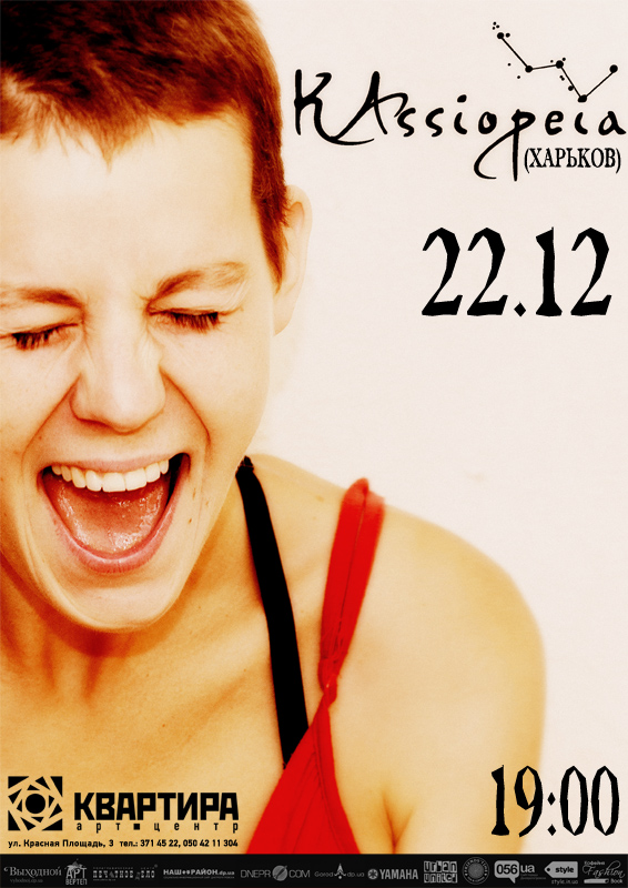 22 декабря в 19.00 арт-центр "Квартира" состоится замечательный концерт харьковской группы KAssiopeia!Свое оригинальное звучание группа обрела благодаря сочетанию абсолютно разных направлений музыки. От глубокой этники, через джаз, индии, соул и фанк к року и куда-то дальше через Луну к созвездию KAssiopeia.