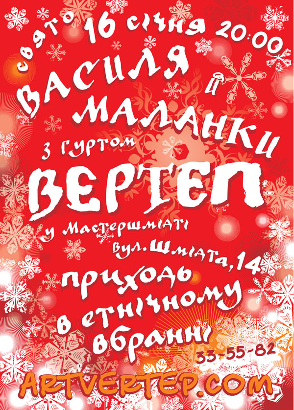 Цього разу чотири вокалісти і більше десяти інструментів, одним словом - етно-фьюжн. Заряд позитивної енергії на цілий рік. Вертепуймо разом!