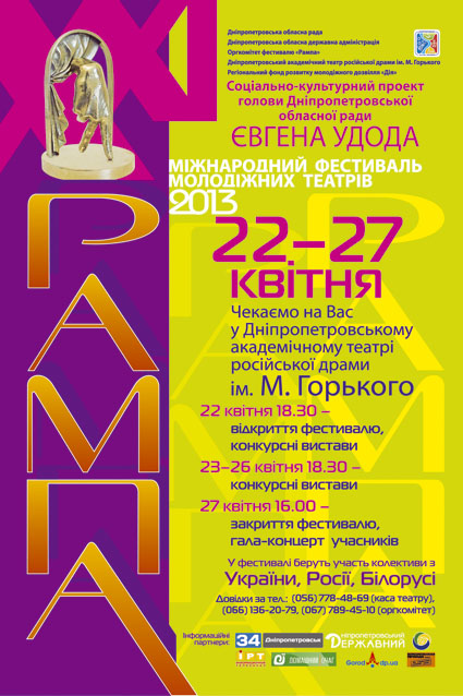 З 22 по 27 квітня у стінах Дніпропетровського академічного театру російської драми ім. М. Горького пройде XXI Міжнародний фестиваль молодіжних театрів «Рампа-2013».