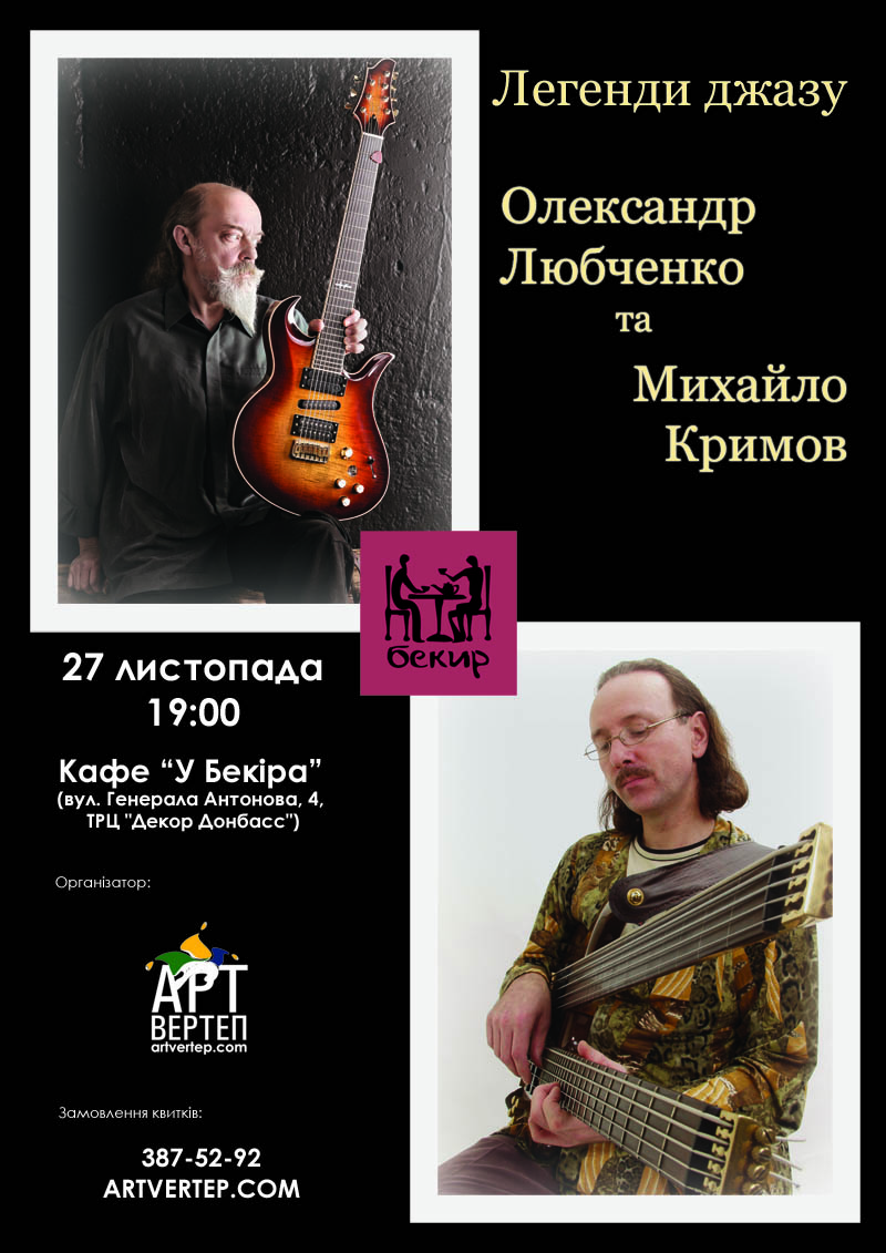 Концерт з програмою нового альбому всесвітньо відомого майстра гітари, композитора та гітариста, засновника своєї унікальної гітарної школи Олександра Любченка (Дніпропетровськ) та його колеги, одного з найкращих з європейських бас-гітаристів, Михайла Кримова (Київ).