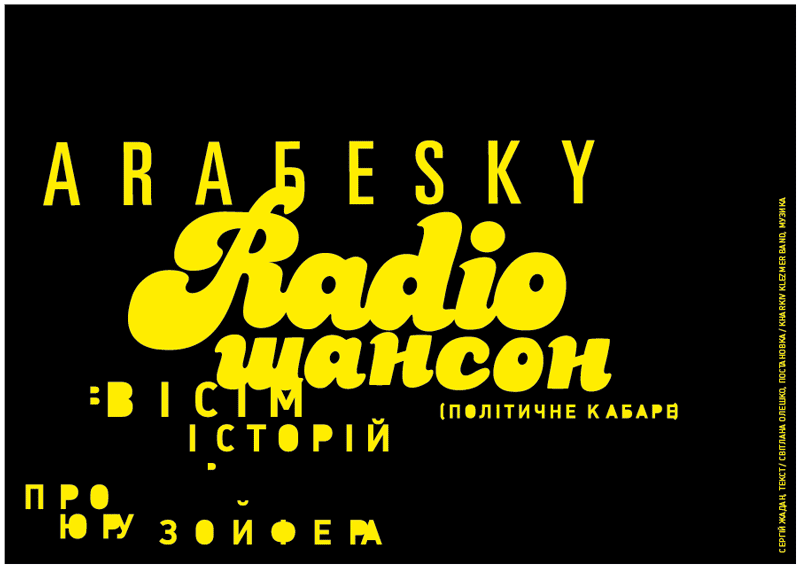 “РАДІОШАНСОН (вісім історій про Юру Зойфера)” – це поєднання сучасного театру, поезії та клезмерської музики в експериментальному просторі авангардних декорацій і костюмів.