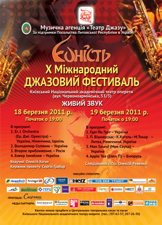 18-19 березня у приміщенні Національного академічного театру оперети відбудеться Х Міжнародний джазовий фестиваль «Єдність».
