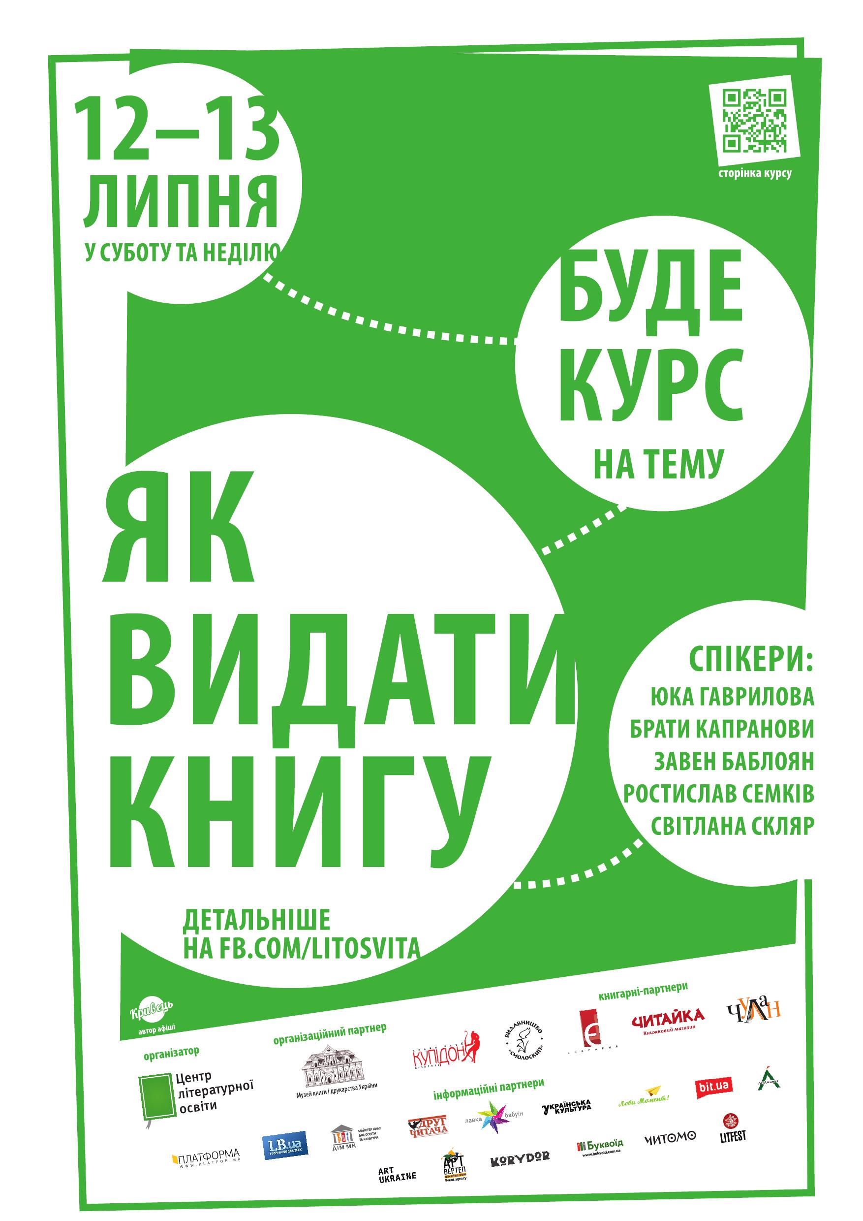 12-13 липняв Києві відомі українські письменники та видавці поділяться секретами ефективної співпраці молодих авторів з видавництвами. «Центр літературної освіти» оголошує прийом анкет на курс «Як видати книгу». Реєстрація учасників триватиме до 8 липня включно.