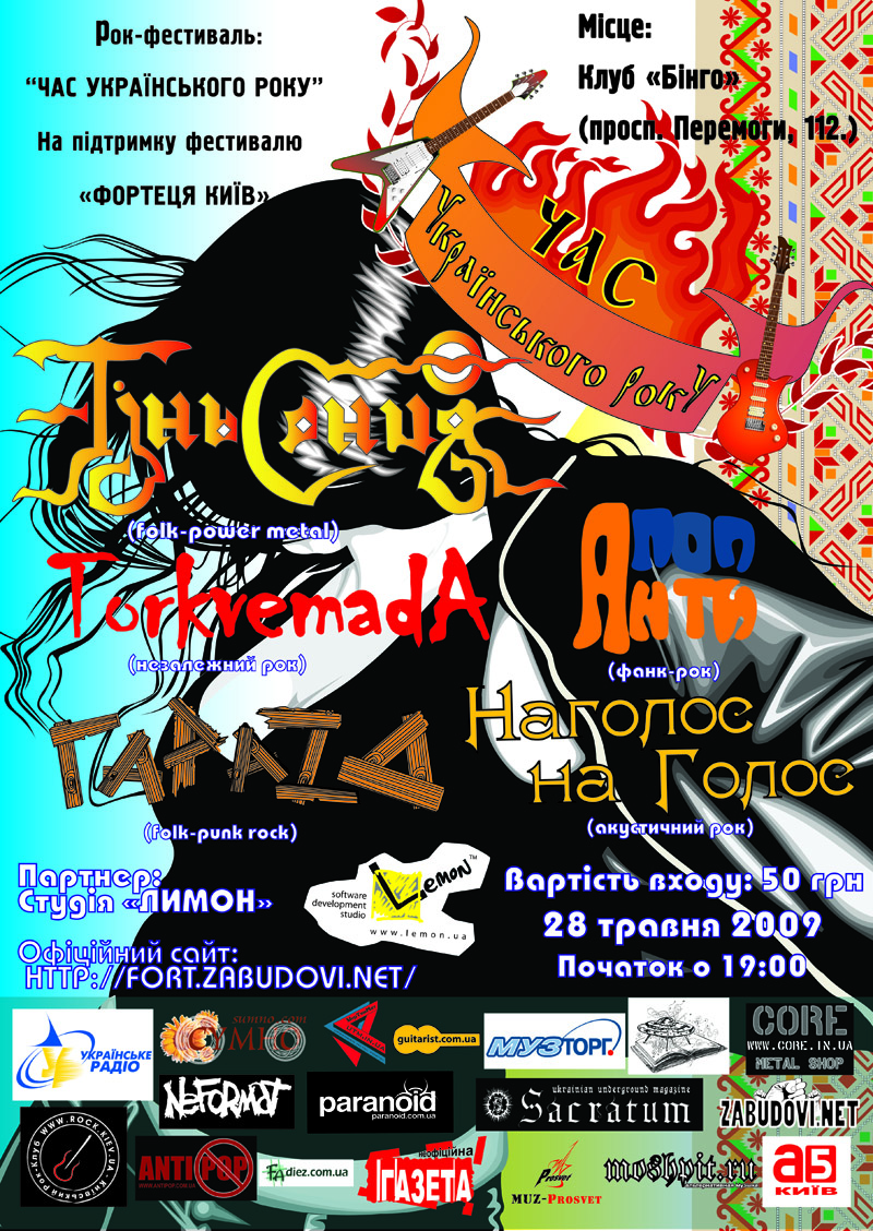 28 травня 2008 р. відбудеться етно-рок-фестиваль “ЧАС УКРАЇНСЬКОГО РОКУ”. Захід проводиться на підтримку фестивалю «Фортеця Київ».