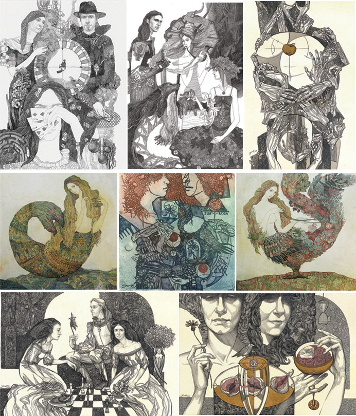 Основною темою робіт є Людина, з її складним, але цікавим життям. За допомогою символів художниці вирішують багато питань людської сутності. Почуття лірики є також невід’ємною частиною Людини. Сплетіння і взаємодія проблематики Людини і ліричних почуттів відображається в офортах та графіках мисткинь. Кельтська та слов’янська орнаментальність підкреслюють тендітність та майстерність в роботах.