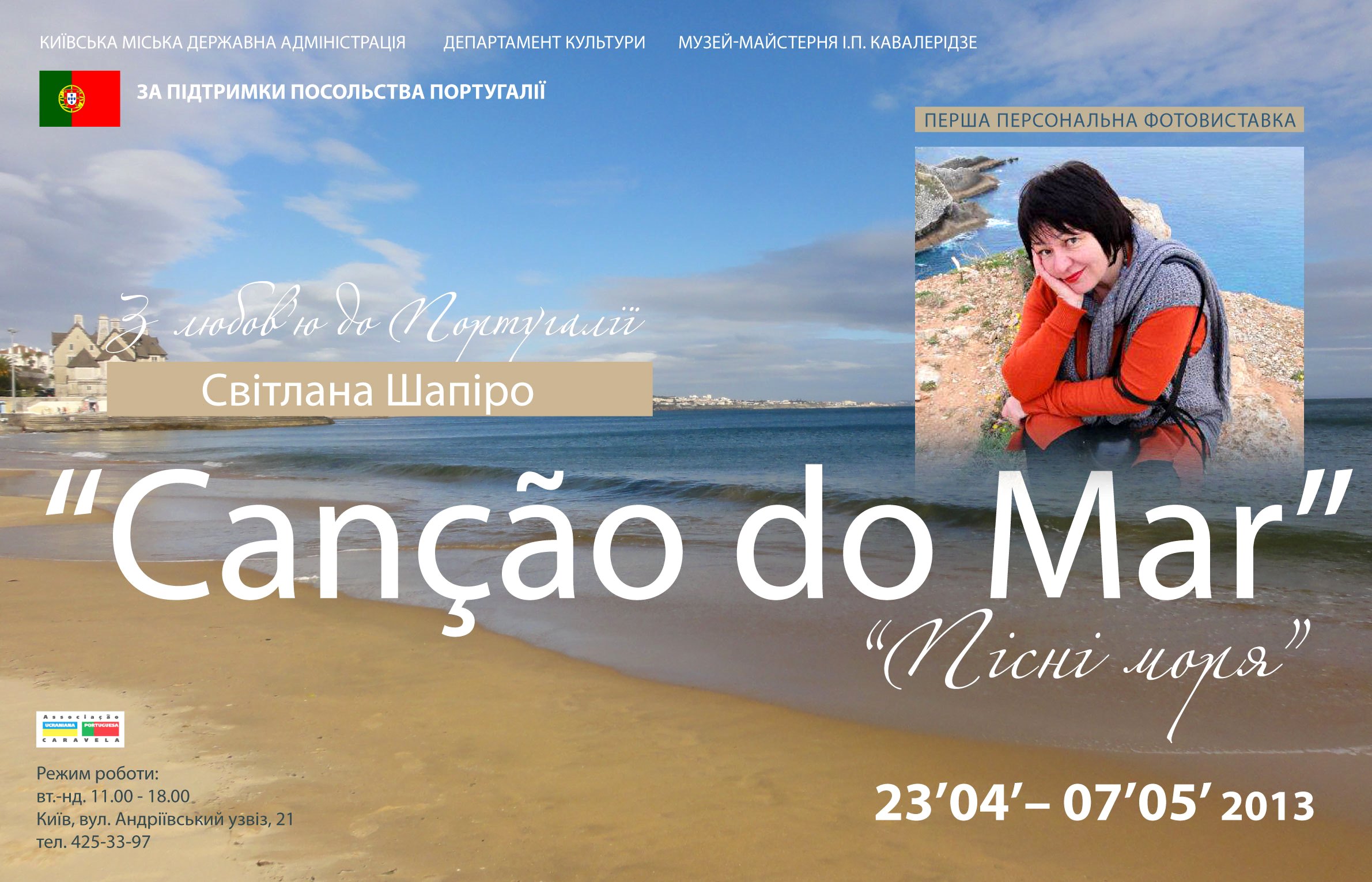 С 23 апреля по 7 мая 2013г. в киевском музее-мастерской Ивана Кавалеридзе (Андреевский спуск, 21) пройдет выставка фотографий и картин Светланы Шапиро под названием "Песни моря". Событие уникальное, поскольку это первая выставка в Украине, посвященная Португалии.