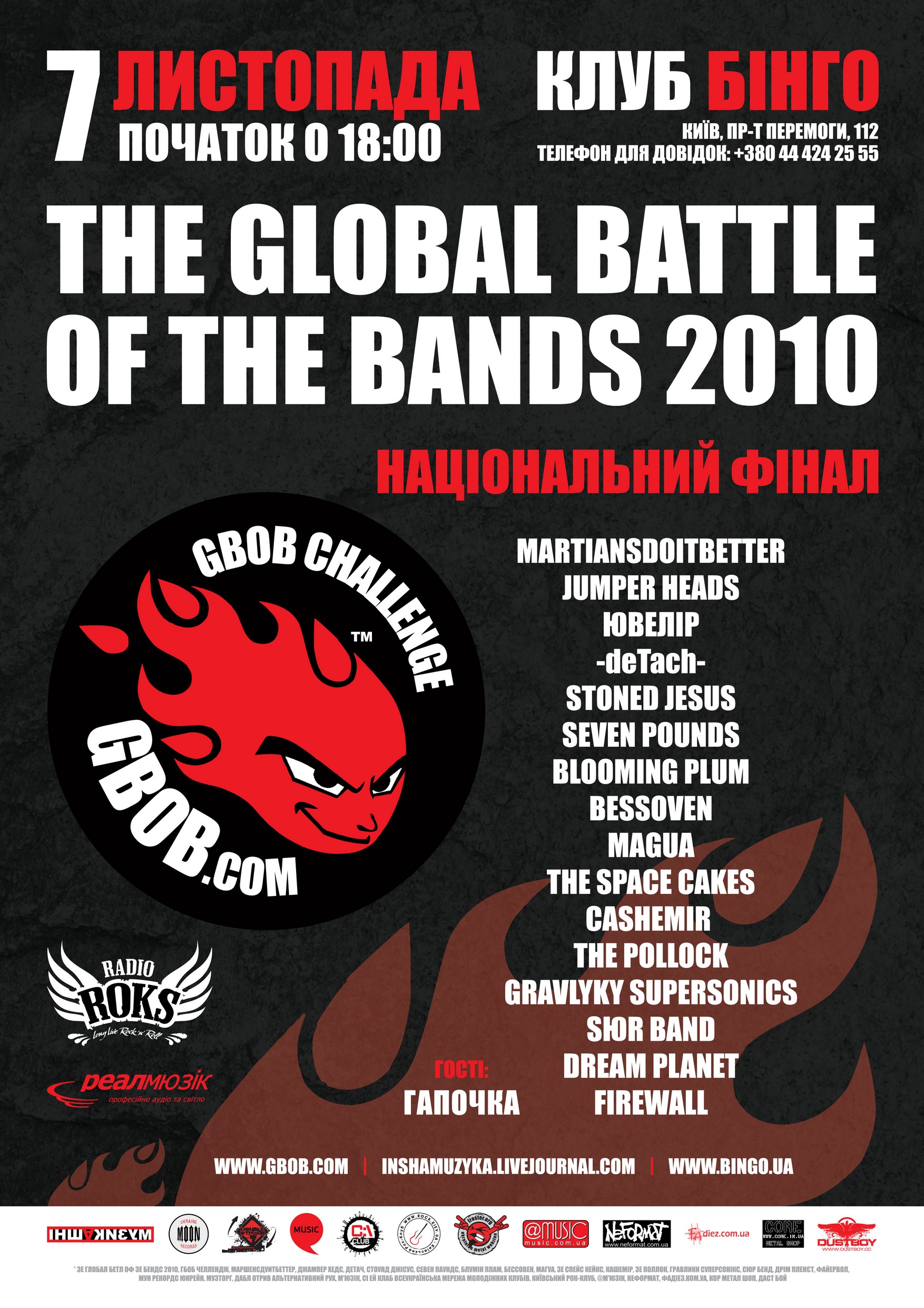 В сьомому за ліком GBOB Challenge Ukraine відбулось 7 відбіркових турів в Києві, Львові, Харкові та Сімферополі. 65 гуртів з усієї країни боролися за місця в Національному Фіналі, де крім них приймуть участь найкращі гурти попереднього сезону (з 2-го по 6-те місце Національного Фіналу 2009).