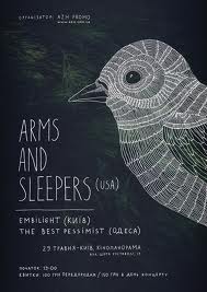 Американський гурт Arms and Sleepers (ембієнт/пост-рок/тріп-хоп) у рамках європейського весняного турне виступить в Україні. Підтримку складуть два найкращих пост-рок гурти в Україні embilight (Київ / facebook) та The Best Pessimist (Одеса / facebook).