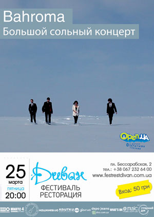 25 марта (пятница) в фестиваль-ресторации с большим сольным концертом выступит киевская группа «Bahroma».