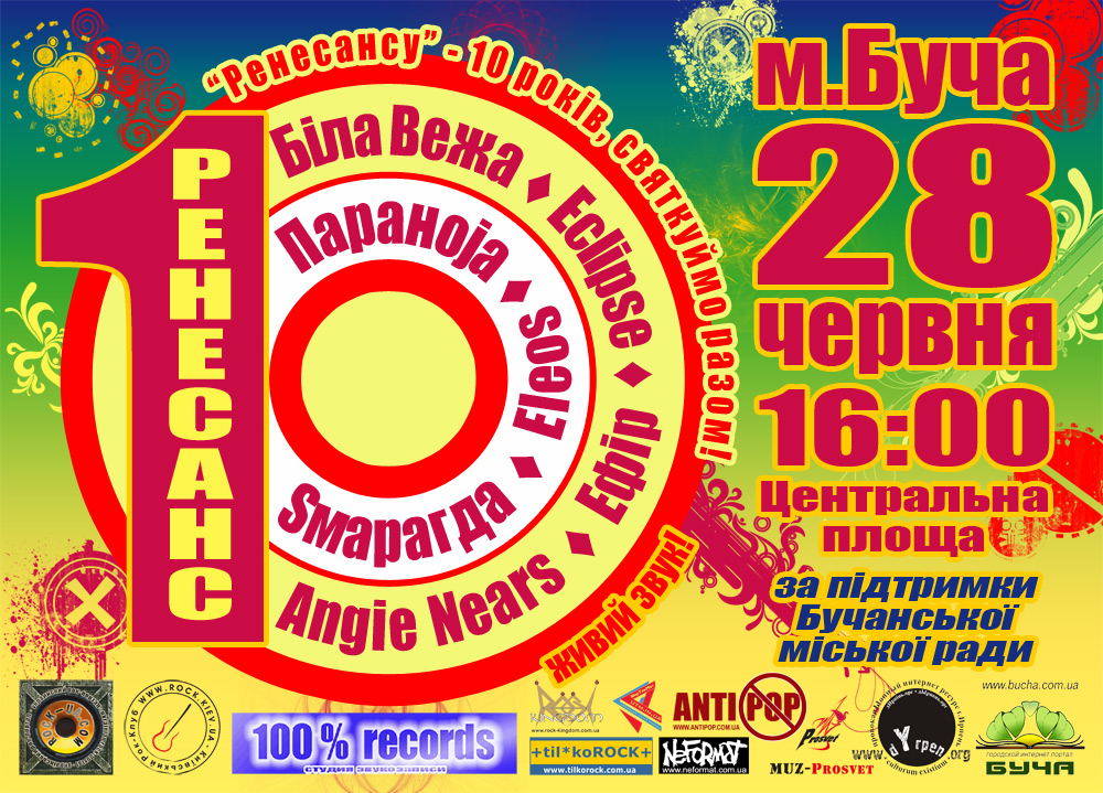 «Ренесанс» запрошує усіх 28 червня 2008 року відвідати чудове місто Буча, що поблизу Києва, та взяти участь у надзвичайному святі, яке розпочнеться о 16:00. Разом із ювілярами гарний настрій даруватимуть найкращі гурти, з якими «Ренесансу» доводилося виступати на одній сцені: «Біла Вежа», «Ефір», «Параноjа», «Eleos», «Engie Nears», «Eclipse» та «Sмарагда»!