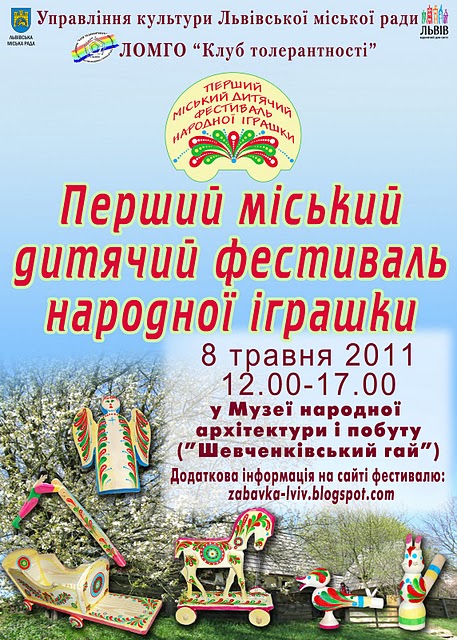 Перший міський дитячий фестиваль народної іграшки проходитиме 8 травня 2011 року з 12.00 до 17.00 год. в рамках святкування Дня матері на відкритому майданчику у Музеї народної архітектури та побуту.