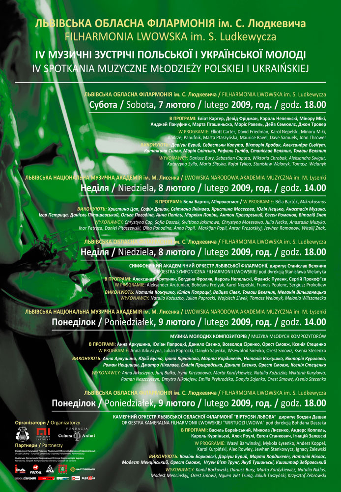 7, 8, 9 лютого 2009 року у Львівській філармонії відбудуться IV Музичні Зустрічі Польської та Української Молоді.