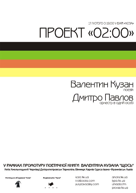 Організатори: Мистецьке об’єднання “Коза” і тернопільське видавництво “Крок”.