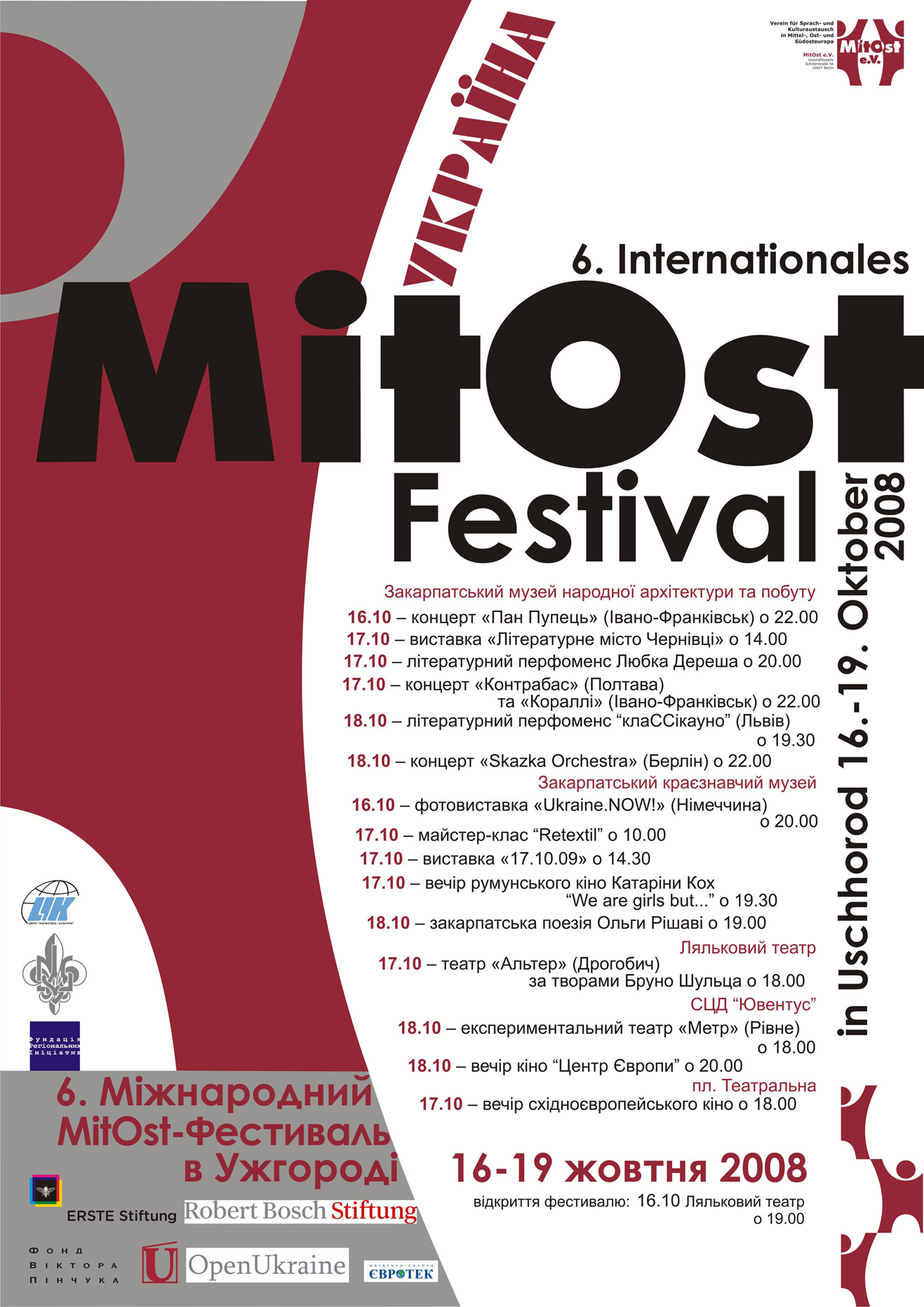 - широку культурну програму з виставками, літературними вечорами, лекціями, концертами, театральними дійствами з України, Німеччини, Чехії, Румунії, Угорщини, Росії, Білорусі, Польщі;