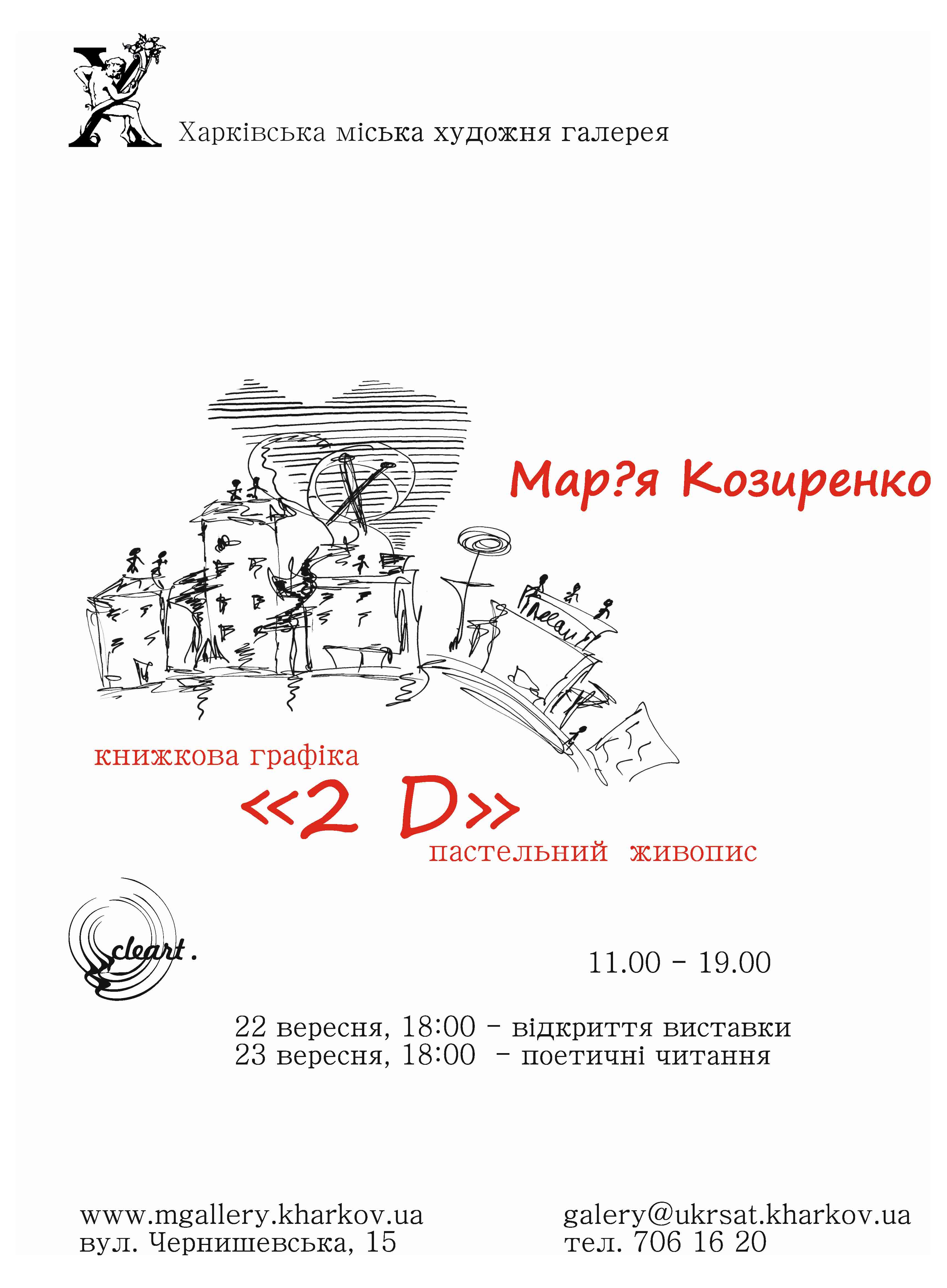 23 вересня, 18:00 – літературнi читання (новi тексти Марii Козиренко + мiкс харкiвських поетiв: Олена Черниш, Євген Журер, Олена Руда).
